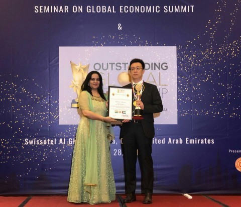 우수 글로벌 리더십 어워드(Outstanding Global Leadership Award)는 경제 학자, 국회의원 및 산업가들에 의해 1980년에 설립된 델리(인도) 기반의 경제 연구소 Institute of Economic Studies India(이하 IES)에서 제정, 수여하는 상으로 두바이의 왕족이자 에미레이트항공사의 회장인 Sheikh Saeed Bin Ahmed Al Maktoum이 후원하고 있다.