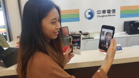 | 한 고객이 대만 송산공항 중화통신 카운터에서 타이완펀팩 구매 후 투어톡 앱을 통해 영상통화로 통역 도움을 받고 있다 |