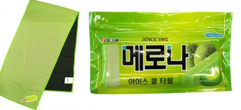 물에 적셔 털기만 하면 시원함을 느낄 수 있는 기능성 타월도 출시됐다. GS25는 더위를 피할 수 있는 상품에 대해 고민하던 중 타월 제조 전문 중소기업 ‘무한타올’과 손잡고 이번 메로나아이스타월을 출시했다.
