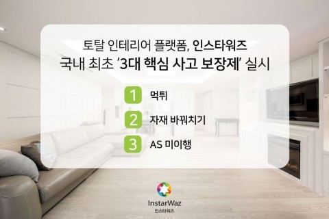 인테리어를 의뢰했다가 소비자가 피해를 입는 사례가 늘고 있어 인테리어 O2O 플랫폼 인스타워즈(대표 황인철)가 ‘3대 핵심사고 보장제’를 실시한다고 밝혔다.