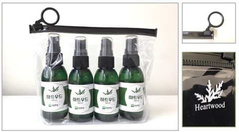 편백나무의 피톤치드를 활용한 대부분의 편백수가 새집증후군에 사용되는 대용량 제품으로 활용되고 판매되고 있지만 ‘사천편백림 하트우드 편백수는’는 언제 어디서나 사용 가능한 저용량(60mL) 제품으로 여행시에도 손쉽게 보관할 수 있는 슬라이드 파우치를 제공하고 있다.