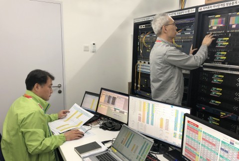 | 자카르타 국제방송센터에서 KT 직원이 네트워크 품질테스트를 진행하고 있다 |