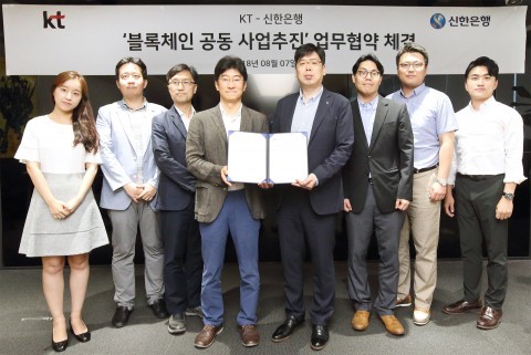 KT(회장 황창규)와 신한은행(은행장 위성호)이 KT 광화문빌딩 이스트에서 블록체인 기술 기반의 신규 사업을 공동으로 추진하기 위해 업무 협약을 체결했다고 8일 밝혔다.