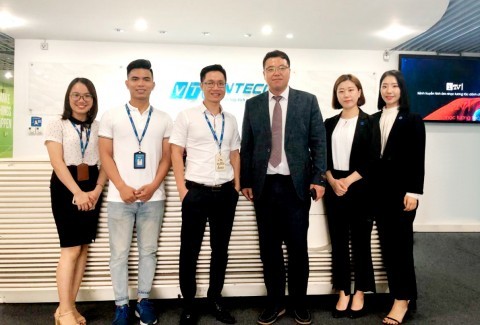 | 베트남 국영기업 VTC Intecom와 닥터슬라이드 담당자들이 기념촬영을 하고 있다 |