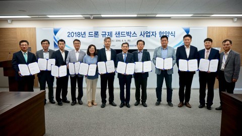 항공안전기술원(원장 김연명)은 ‘드론 규제 샌드박스 시범사업’에 참여하는 9개 대표사업자와 9일 사업협약을 체결했다고 밝혔다.