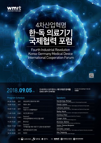 4차산업혁명 시대에 국제적 협력 네트워크 기반을 다지기 위해 진행되는 이번 포럼은 연세대학교 의공학부(세부책임자 김한성 교수), 연세대학교 원주의료원(원장 이영희)이 공동으로 개최한다.