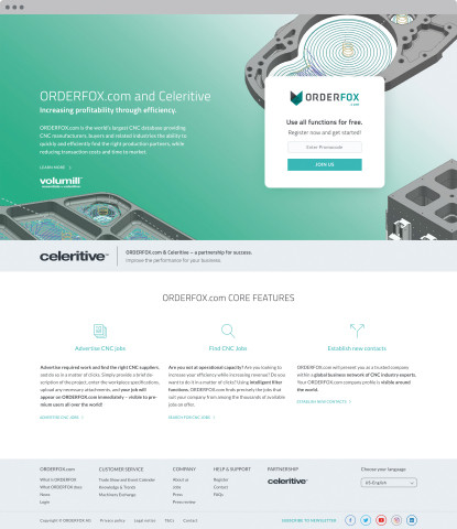 VoluMill™ 및 VoluTurn™ 개발업체인 셀레리티브 테크놀로지스(Celeritive Technologies, Inc., 이하 셀레리티브)가 리히텐슈타인 지방자치체 루겔(Ruggell)에 본사를 둔 ORDERFOX.com과 전략적 제휴를 체결했다고 발표했다.
