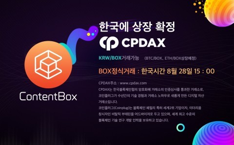 컨텐츠박스의 파트너 거래소인 CpDAX(대표 어준선)는 2014년부터 기업을 위한 블록체인 기반의 다양한 솔루션을 제공해왔다. 그 중에서도 블록체인 기반 본인 인증 서비스를 구축해 투자자들의 이목을 끌었다. 현재는 활발한 기술 연구로 200여개의 블록체인 관련 특허를 보유하고 있는 블록체인 기술 특허 선도 기업이다.