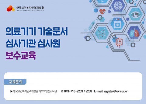 | 한국보건복지인력개발원이 실시하는 의료기기 기술문서 심사기관 심사원 보수교육 |