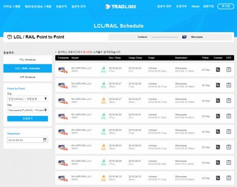 | 트레드링스의 철송 스케줄 서비스 화면 |