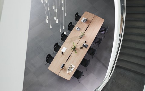 최대 12명이 착석 가능한 이번 신제품은 심플하고 고급스러운 디자인과 인체공학적인 형태의 상판이 돋보인다. 테이블 하부 또한 밑면 커버로 완벽하게 마무리해 어느 각도에서 보든 완성도 높은 디자인을 구현한 것이 특징이다. 고급스러운 내추럴 우드 색상과 도시적인 블랙 색상의 조합으로, 럭셔리한 공간을 연출해주며 큰 크기에도 무게감이 느껴지지 않는 디자인으로 캐주얼한 미팅이 진행되는 라운지나 협업 공간과도 조화롭게 어울린다. 천연 무늬목, 집성 무늬목 그리고 지문 자국을 방지한 HPM 등 총 3가지의 상판 옵션으로 취향에 따라 선택할 수 있다.