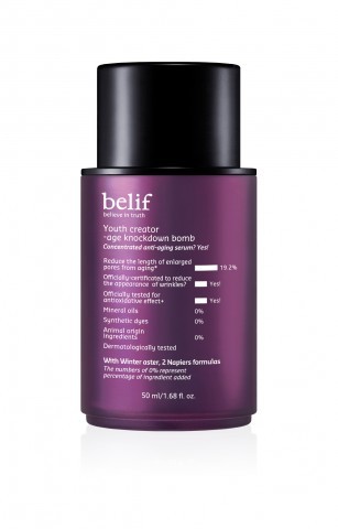 ‘빌리프 유쓰 크리에이터-에이지 넉다운 밤’은 피부 나이를 넉다운 시키는 토탈 안티에이징 세럼이다. 빌리프의 안티에이징 기술력을 고스란히 담은 제품으로 젊은 피부의 핵심인 탄력 에너지를 촘촘하게 채워 매끄러우면서도 탱탱한 피부로 가꿔준다.