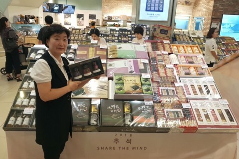 특히 이번 추석선물 판매전에는 흑삼, 아로니아, 사과와인, 발효식초, 전통한과, 한산소곡주 등 가장 인기있는 30여개 제품들로 구성했다.