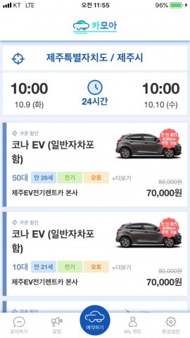 렌트카 전문 예약 앱 카모아가 제주도에서 전기차 렌트카 서비스를 시작한다고 12일 밝혔다. 제주도 여행 시 숙소 예약만큼 중요한 것이 바로 렌트카 예약이다. 제주도는 섬이지만 광대한 크기를 지녔기에 효율적인 제주도 여행을 위해서는 렌트카가 필수적이다.