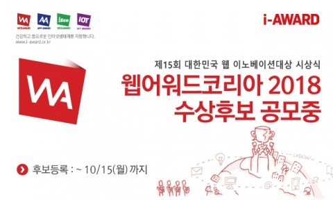 (사)한국인터넷전문가협회(KIPFA, 협회장 김철균)는 웹 분야 최대 규모의 대한민국 웹 이노베이션대상 시상식인 ‘웹어워드코리아 2018’ 후보등록을 10월 15일까지 진행한다고 밝혔다.