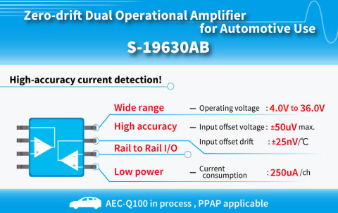 일본의 반도체 제조회사 에이블릭(ABLIC Inc.)이 자동차용 제로 드리프트 연산증폭기(operational amplifier) 제품 S-19630AB를 출시했다고 14일 발표했다.