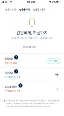 | 알다 신용올리기 화면 |