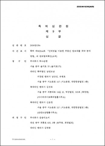 특허심판원은 8월 14일 사건번호 2018당 1356 외 3건 사건에 대해 심결 각하 판결을 내렸다.