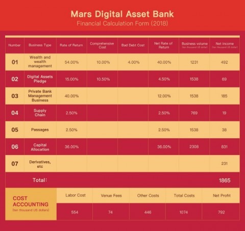 마스 디지털 자산 은행은 등록자 수가 30만명을 넘어설 것으로 기대되며, 거래량 규모는 약 15억달러로 추산된다. 또한 올해 말 기준 1865만달러의 이익을 기록할 전망이다. 마스 디지털 자산 은행은 블록체인 기술 업그레이드와 함께 신규 사업 모델을 모색하며 급성장을 준비하고 있다.