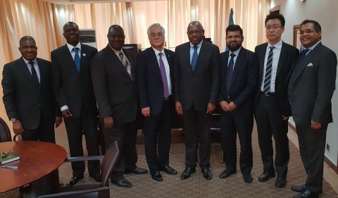 | 로커스체인 파운데이션의 이상윤 대표이사(오른쪽에서 2번째), 콩고민주공화국 재무부 장관 Henri Yav Mulang(오른쪽에서 4번째)이 기념촬영을 하고 있다 |