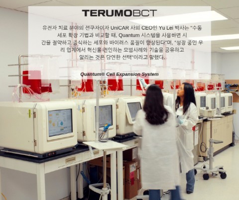 Terumo BCT가 Shanghai UniCAR-Therapy Bio-Medicine Technology Co.와 제휴를 맺고 키메릭 항원 수용체(CAR) T세포 치료에 필요한 세포 치료 제조 프로세스를 자동화하기 위해 Terumo BCT의 세포 증식 장치를 채택했다. 비상장기업인 UniCAR는 상하이에 Terumo BCT 기술을 연구할 Center of Excellence를 11월에 설립할 예정이다.