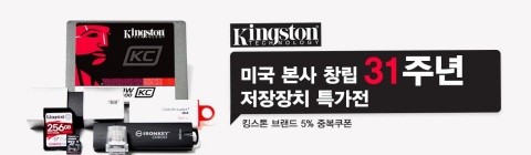 Kingston® 은 1987년 10월 17일 CEO John Tu와 COO David Sun가 공동창업하고 새로운 Single In-Line Memory Module(SIMM)를 고안하여 그 후 몇 년 동안 산업 표준으로 공헌을 한다. 그동안 보여준 열렬한 성원에 부응하고자 Kingston은 창립 31주년 기념행사로 10월 19일부터 옥션, 컴퓨존, 쿠팡, G마켓, 11번가에서 선정된 제품에 대하여 한정된 물량으로 최대 31% 할인행사를 실시한다.