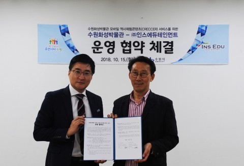 수원화성박물관(관장 한동민)과 ㈜인스에듀테인먼트(대표 서봉현)가 15일 수원화성박물관 크래커(모바일 셀프가이드) 서비스 운영을 위한 협약을 체결하였다고 16일 밝혔다.