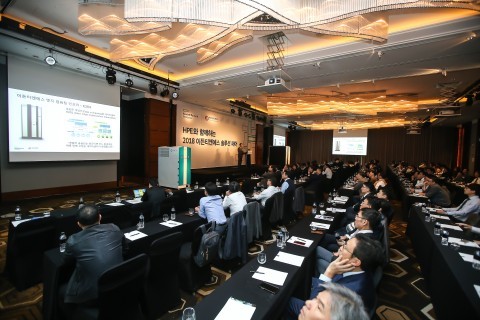 이든티앤에스가 2018 이든티앤에스 솔루션페어에서 신제품을 소개하고 있다