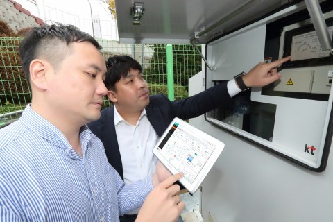 | KT 직원들이 KT-MEG을 활용해 연료전지 시설을 점검하고 있다 |