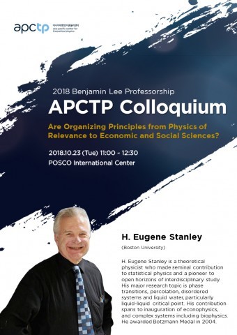 올해는 볼츠만 메달 수상자이자 통계물리 분야 세계적 석학인 유진 스탠리 교수(H. Eugene Stanley, 보스턴대학교)를 초청하여 국내외 연구진 및 학생들을 대상으로 통계물리 기반 경제물리·사회과학에 대한 심도 있는 강연을 진행한다.