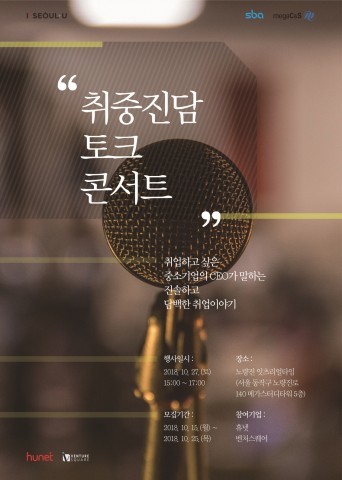 서울산업진흥원(SBA)과 메가스터티교육이 10월 27일 ‘취중진담 토크콘서트’를 개최한다.