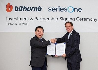 빗썸은 31일 미국 핀테크기업 시리즈원(seriesOne)과 계약을 맺고 증권형 토큰 거래소 구축을 위한 투자와 기술 지원을 한다고 밝혔다. 시리즈원은 내년 상반기 중 미국 증권거래위원회(SEC)의 인가를 받아 현지에 증권형 토큰 거래소를 설립할 계획이며, 빗썸은 관련 기술을 제공하고 거래소 사업을 담당한다.