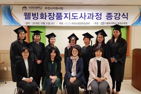 웰빙화장품지도사과정은 국제아로마테라피임상연구센터의 민간자격증과정으로 부천시 평생학습센터가 후원하고 가톨릭대학교 평생교육원이 주관하는 부천인생학교의 일환으로 부천시의 경력단절여성과 은퇴를 준비하는 중장년층을 위한 과정이다.