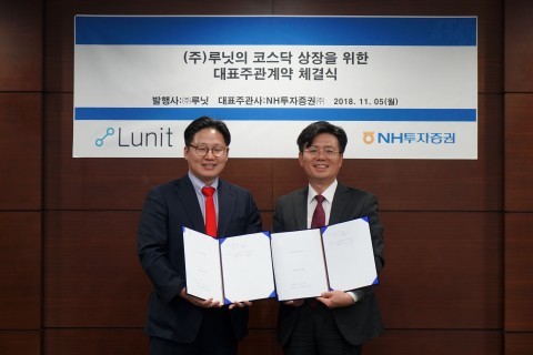 의료 인공지능(AI) 기업 루닛(대표이사 서범석)은 5일 NH투자증권(대표이사 정영채)과 대표주관 계약을 체결, 본격적인 코스닥 상장 준비에 돌입했다. 루닛은 기술평가특례 제도를 통해 2020년 경 거래소 문을 두드릴 예정이다.