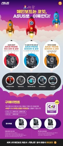 이번 행사 제품은 보급형 시장 겨냥 제품과 베스트셀러, 게이머 특화 상품 등으로 이뤄져 있다. 뛰어난 내구성과 기본기를 갖춘 ‘ASUS PRIME H310M-K 코잇’, NVMe 규격 M.2 슬롯을 더해 초고속 스토리지 성능을 실현한 ‘ASUS PRIME B360M-K 코잇’, 오버클럭 최적화로 더 강력한 성능을 뽑아내는 ‘ASUS PRIME B360M-A 코잇’ 등 3종이 구매행사 대상 제품들이다.