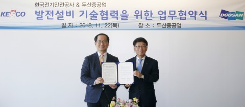 두산중공업이 한국전기안전공사와 발전설비 기술협력을 위한 업무협약을 맺고 발전설비 신뢰도 향상과 신재생 발전설비 안전관리 기준 강화에 나선다고 22일 밝혔다.