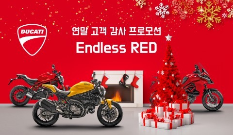 프리미엄 이탈리아 모터사이클 두카티의 공식 수입원 두카티 코리아(유한회사 모토로싸)가 12월 24일까지 한 해 동안 받은 고객의 사랑과 성원에 보답하는 고객감사 프로모션 ‘Endless Red’를 진행한다고 26일 밝혔다.