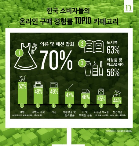 | 한국 소비자들의 온라인 구매 경험률 TOP10 카테고리 |