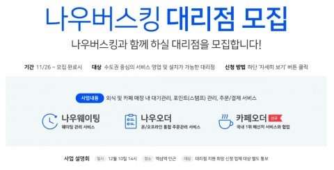 대리점 모집 대상은 나우버스킹의 서비스를 설치할 수 있는 수도권 매장이다.