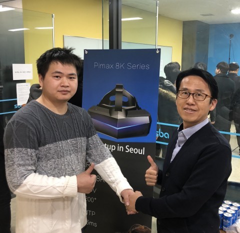 이날 협약은 서울에서 열린 파이맥스 8K HMD 로드쇼에서 진행됐다. 이 자리에는 파이맥스 8K HMD의 킥스타터 지원자, 예약판매 신청자 등 국내외 150여명이 참석했다. 파이맥스는 1600만 화소의 고사양을 자랑하는 8K VR HMD이 실제 사람의 시야와 비슷한 200도의 시야각을 제공해 보다 몰입감 있는 VR경험을 선사했다.