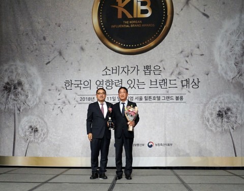 | 신일 오영석 부사장(오른쪽)이 2019 소비자가 뽑은 한국의 영향력 있는 브랜드 대상을 수상하고 있다 |