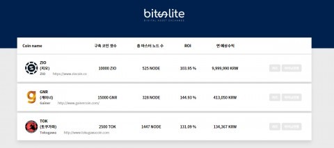 비츠라이트는 투자자들이 암호화폐를 쉽고 편하게 접근할 수 있도록 다양한 가상화폐 가운데 마스터노드의 구축을 대행해주는 서비스다. 마스터노드 코인 가운데 성장 가능성이 높은 것을 골라 포트폴리오로 만들어 서비스를 제공하는 것이다.
