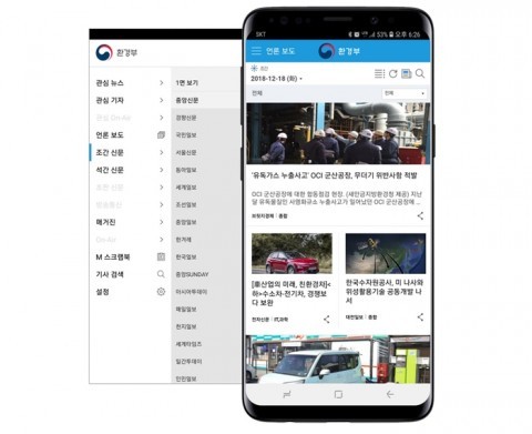 | 기업용 뉴스포털 모바일 앱 아이서퍼V4M 이용 화면 |