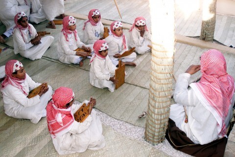 전통 민속놀이 학교 옆에는 안마당이 있고 무타와(Mutawa, 전통적인 교사)와 학생들을 본떠 만든 조형물이 전시된다.