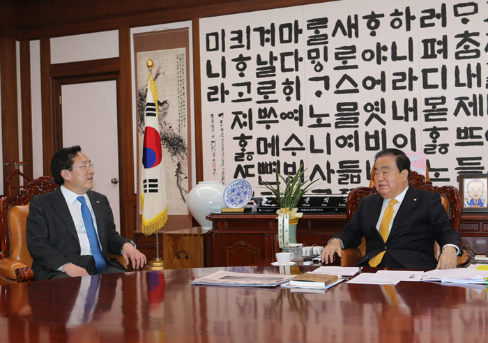 김기문 중소기업중앙회장은 5일(화) 문희상 국회의장과 이해찬 더불어민주당 대표를 방문해 취임 인사와 함께 중소기업 현안에 대한 적극적인 관심과 협조를 요청했다.