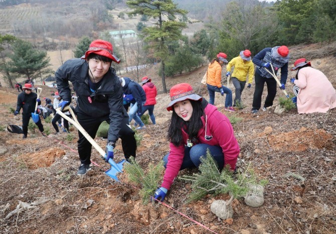 최근 미세먼지, 황사 문제로 대기 오염에 대한 우려가 커지는 가운데, 3월 30일 경기도 화성시 양감면에서 열린 2019 ‘신혼부부 나무심기’ 행사에는 신혼부부 504명(252쌍)을 비롯, 사회리더, 유한킴벌리 임직원, 산림청 관계자 등 600명이 함께 전나무, 산벚나무 등 8,000 그루를 함께 심으며, 신혼부부들의 새로운 출발을 격려하고 미래 자녀들에게 물려줄 자연환경을 가꾸는데 동참했다.